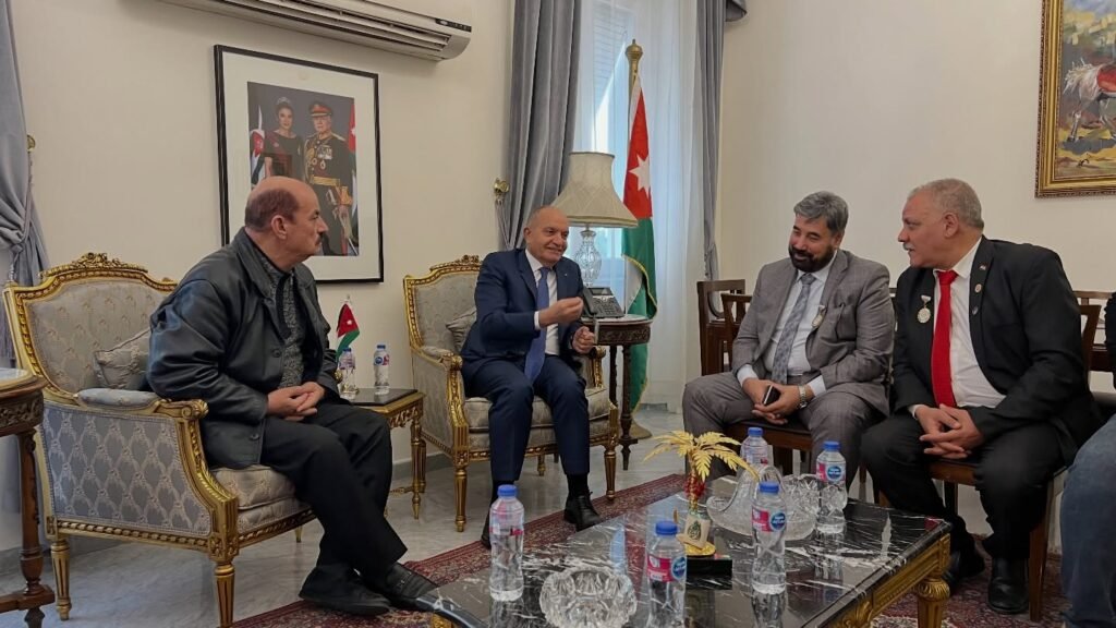 The Embassy of the Hashemite Kingdom of Jordan in the Arab Republic of Egypt today received Body Engineer Dr. Mohammad Khaled Al-Buqai, accompanied by MP Dr. Shaher Shatnawi, Dr. Mohammad Al-Zeinati, and Professor Dr. Ashraf Mohammad Salem Al-Rajoub, Dean of Irbid University College. The visit aimed to explore prospects for cooperation and to introduce the science of Body Engineering and its growing presence in international forums.