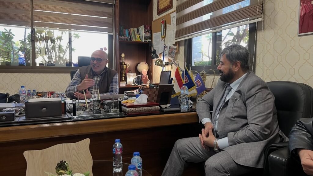 The President of the Egyptian Karate Federation and Chairman of the Board of Al-Zohour Club, Counselor Dr. Mohammad Al-Dabardash, accompanied by Mr. Salah Al-Ghazali, received Dr. Hanshi Mohammad Khaled Al-Buqai, Chairman of the Board of Shotokan Karate, at the headquarters of Al-Zohour Club in the Egyptian capital, Cairo. The official visit aimed to strengthen frameworks of joint sports cooperation between the two sides.